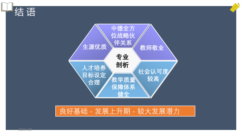 在中德两国建立全方位战略伙伴关系的时代大背景下,德语专业的发展有着长足的驱动力,毕业生有着良好的发展前景。申博sunbet德语专业是一个具有良好基础、处于发展上升期、拥有较大发展潜力的专业,本专业将进一步发挥地域优势,突出专业特色,争取取得长足的发展。