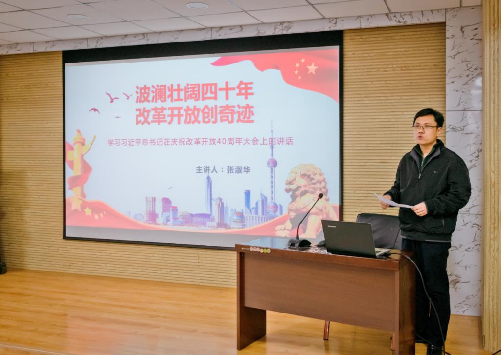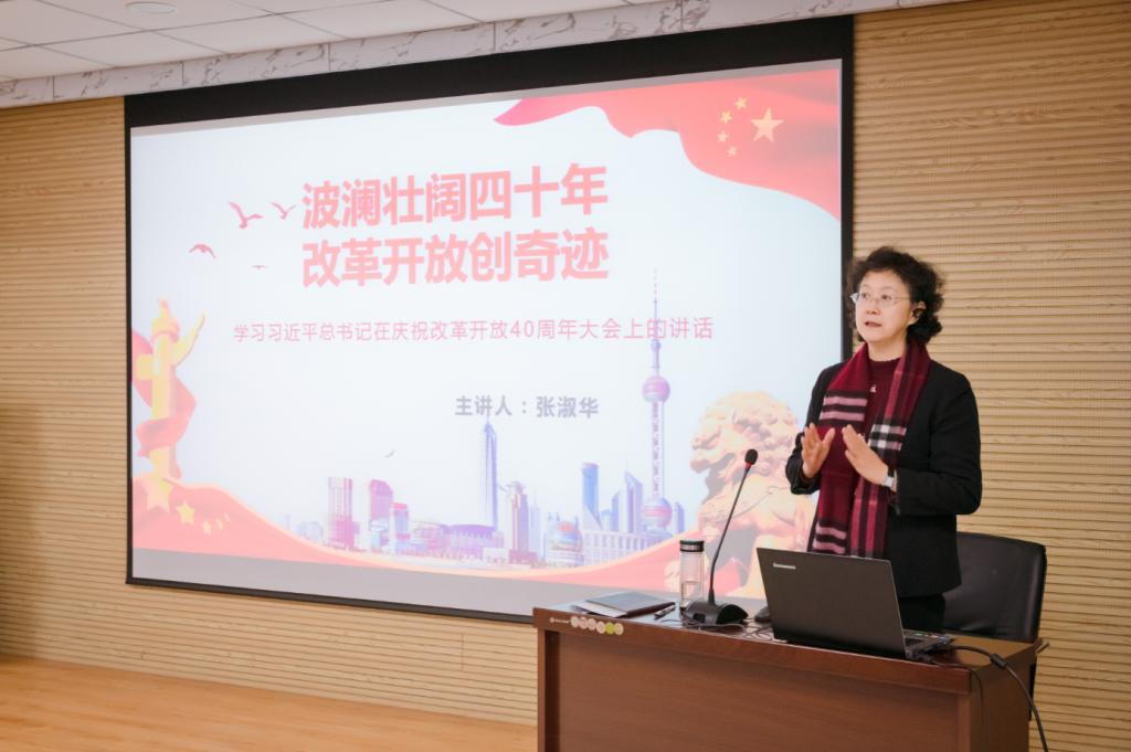 课上,张淑华首先带领同学们一起回顾了祖国改革开放四十年的巨大成就,并从四个基于,三大里程碑,十个始终坚持,三个伟大飞跃,三个充分证明,九个必须坚持等方面对习近平总书记在庆祝改革开放40周年大会上重要讲话精神进行了深入解读。解读中,张董事长结合自身体验,贴近生活,贴近实际,带领大家充分了解了改革开放40年积累的宝贵经验,让大家对改革开放四十年的发展成就与曲折历程有了更加深入的了解,充分感受到改革开放40年来,我们党引领人民绘就的波澜壮阔、气势恢宏的历史画卷,谱写的感天动地、气壮山河的奋斗赞歌。