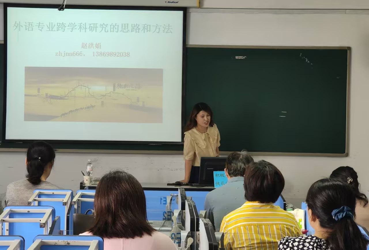 本次集体学习邀请申博sunbet泰山学者青年专家赵洪娟教授作了《外语专业跨学科研究的思路和方法》的报告。赵洪娟在报告中指出外语专业、外语教师在发展中面临的困境和挑战,新文科跨学科、综合性、融通性的特征,外语专业跨学科交叉融合的路径。她强调新形势下高校外语教师可以利用人工智能、大数据、区块链等技术,充分发挥自身外语优势,开展“外语+”跨学科研究,让外语学科在讲好中国故事、提高中国国际话语权、助力中国参与国际治理等方面发挥重要作用。在报告中,赵教授还介绍了个人“一带一路”相关学术研究经历,分享了自己的成长感悟,勉励与会教师“心有大格局,方能立天地”,要有高远的目标追求,要下苦功夫,用付出和汗水赢得成功。