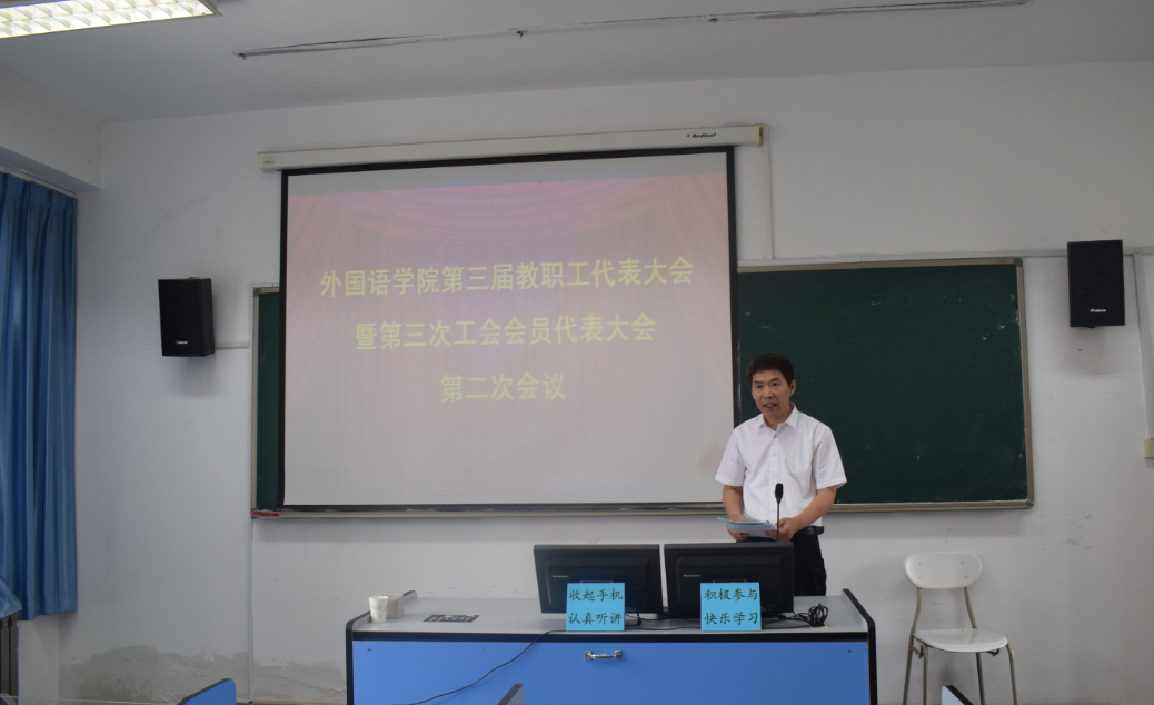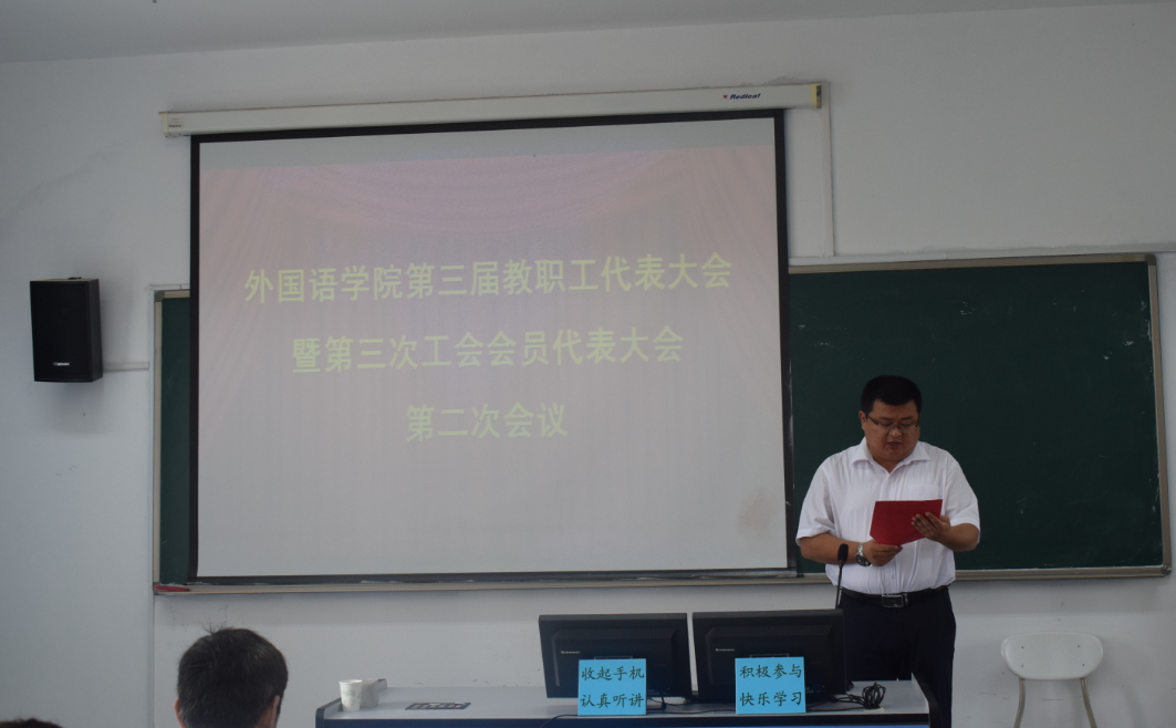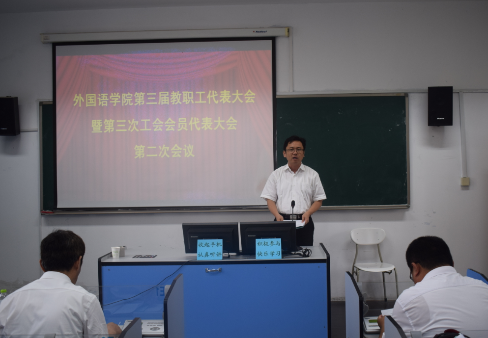 2019年7月17日,申博sunbet第三届教职工代表大会暨第三次工会会员代表大会第二次会议在418语音室召开,应到代表60人,实到52人。会议由党总支副书记兼副经理宋飞主持。