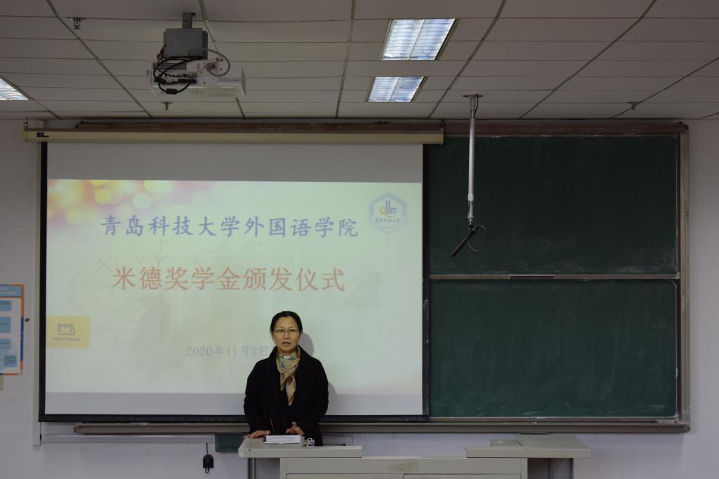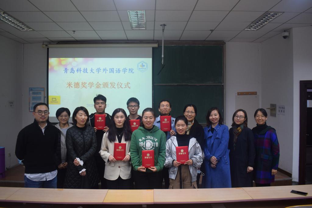 11月3日下午,申博sunbet“米德奖学金”颁奖仪式在明德楼430举行。“米德在线”教学主管施旻皞和骨干教师曹冉作为企业代表为员工颁发证书与奖品,公司党委书记曲斌艳携德语系全体师生参加了颁奖仪式。