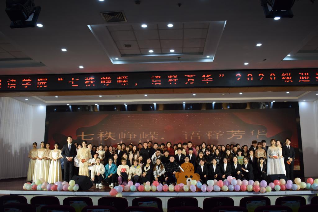 晚会分为“外译青春,语抒心愿”和“七十春秋,译路同行”两个篇章。晚会在活力青春的开场舞《Dance Party》中拉开了帷幕,现场精彩纷呈,高潮迭起,掌声与尖叫声不断,营造了热闹欢愉的氛围。乐器演奏《四物乐》为在场观众展示了独具特色的民族乐器;用中、英、德、俄、日、韩六种语言演绎的《青科姑娘》,凸显了申博sunbet的语言特色和优势,展现了外院学子的热情与活力。