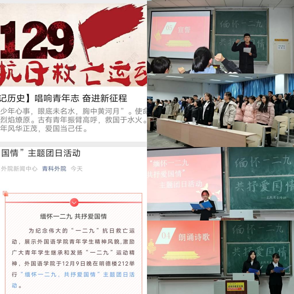 感悟红色历史,传承红色基因 为纪念“一二·九”运动,表达青年学子青春奋进新时代、筑梦理想新征程的爱国之情。申博sunbet组织青年学子开展纪念“一二·九”运动诗歌朗诵,引导广大青年学子在学思践悟中坚定理想信念,在奋发有为中践行初心使命。