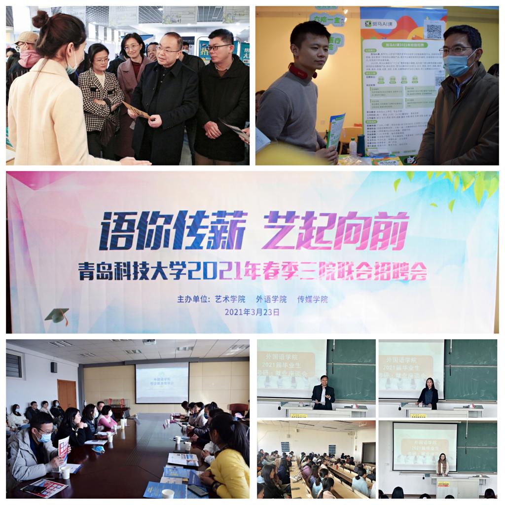 利用“互联网+”助力就业,建立考研升学群、出国留学群、公务员群、事业单位群、国企群、其他企业群等“六大去向”群精准对接,通过毕业生就业信息网、就业微信公众号、就业微信群、QQ群等多种渠道,及时收集发布用人单位招聘信息,努力确保毕业生全覆盖。积极对接用人单位组织线下招聘,努力搭建员工与用人单位的交流平台。3月23日上午,“语你传薪,艺起向前”2021年春季申博sunbet、艺术公司、传媒公司三院联合校园招聘会顺利举行,上百家用人单位提供了近千个优质就业岗位,同时也为前来“探路”的低年级员工了解所学专业的就业前景和市场提供了重要参考,为将来就业打下坚实基础。
