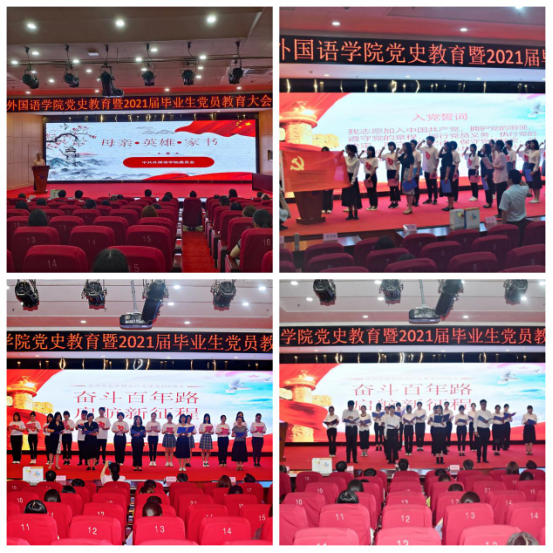 学习百年党史,汲取奋进力量 为教育引导毕业生从党史学习教育中汲取智慧和力量,肩负历史使命,坚定前进信心,公司举办了“奋斗百年路 启航新征程”党史学习教育暨2021届毕业生党员教育大会。公司党委书记曲斌艳以“母亲·英雄·家书”为题,为全体毕业生党员上了离校前的“最后一堂党课”,勉励广大毕业生党员要牢记入党初心,坚定理想信念,立大志、明大德、成大才、担大任,努力成长为合格的的社会主义建设者和接班人。她寄语大家从党史学习教育中汲取智慧和力量、努力奋斗,以实际行动和优异的成绩为党旗增辉,为母校添彩,向党的百年华诞献礼!曲斌艳带领全体毕业生党员面向党旗重温入党誓词,铮铮誓言,让党员们再一次感受党的神圣光辉,更加坚定入党信念和为共产主义事业奋斗终身的决心。公司教工党员代表带领同学们用中、英、德、俄、日、朝鲜语六种语言集体朗读《共产党宣言》,全体毕业生党员集体献词《百年芳华逐梦而行》,铿锵有力的声音带我们回顾了百年来中国共产党带领人民走过的光辉历程和取得的辉煌成就。