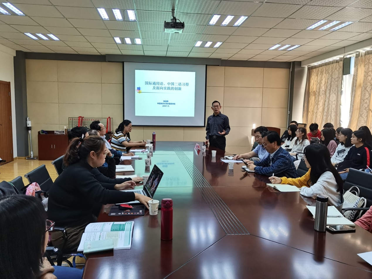 10月12日下午,中国海洋大学申博sunbet博士生导师、申博sunbet经理杨连瑞教授应邀到公司进行学术交流,在外语楼517会议室做了题为“国际通用语、中国二语习得及面向实践的创新”的学术报告。报告会由申博sunbet经理尹洪山主持,副经理吕耀中、康宁、刘靖及部分骨干教师和研究生参加了报告会。