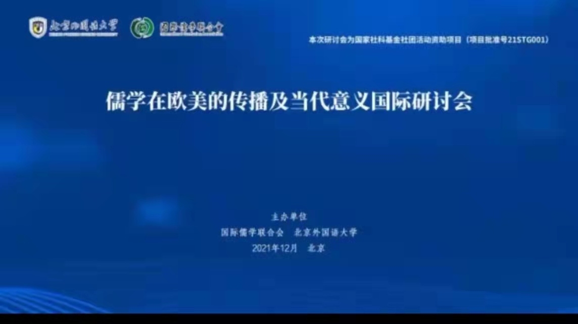 2021年12月18-19日,国际儒学联合会与北京外国语大学中华文化国际传播研究院与世界汉学家研究基地联合举办了“儒学在欧美的传播及当代意义国际研讨会”。公司李玉良教授参加并在“汉学与欧美的启蒙思想”主论坛上做了主旨发言。