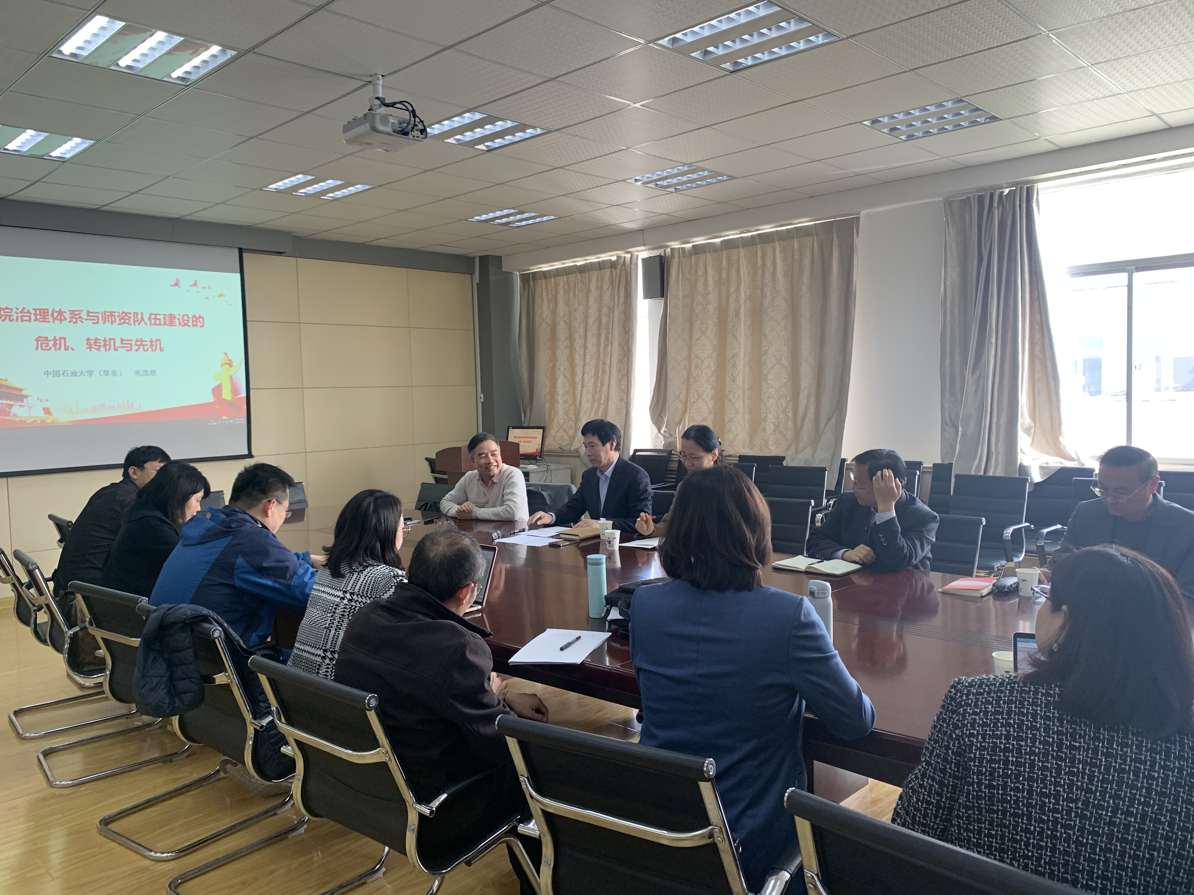为深入开展学习贯彻习近平新时代中国特色社会主义思想主题教育,联系实际深化理论学习,4月25日,公司党委邀请中国石油大学(华东)申博sunbet经理毛浩然教授作《公司治理体系与团队队伍建设的危机、转机与先机》专题辅导报告。经理尹洪山主持,公司班子成员、公司管理骨干和部分学术骨干参加。