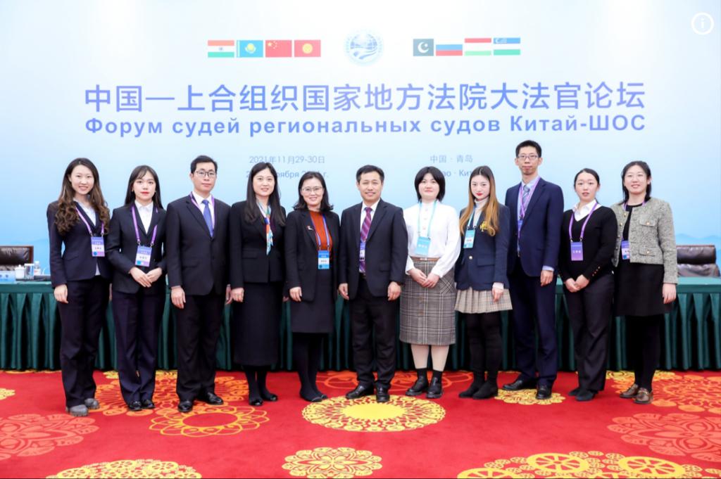 11月29日下午,中国—上合组织国家地方法院大法官论坛在山东青岛举行。本次论坛是上合组织框架下首次举行的地方法院大法官论坛,由山东省高级人民法院主办,以线上线下相结合的方式举行。中华人民共和国首席大法官、最高人民法院经理周强出席开幕会并致辞,最高人民法院政治部主任、最高人民法院副经理、部分全国人大代表及全国政协委员等出席开幕会,其余上合组织成员国最高法院经理、地方法院法官、部分驻华使节以视频方式参会。