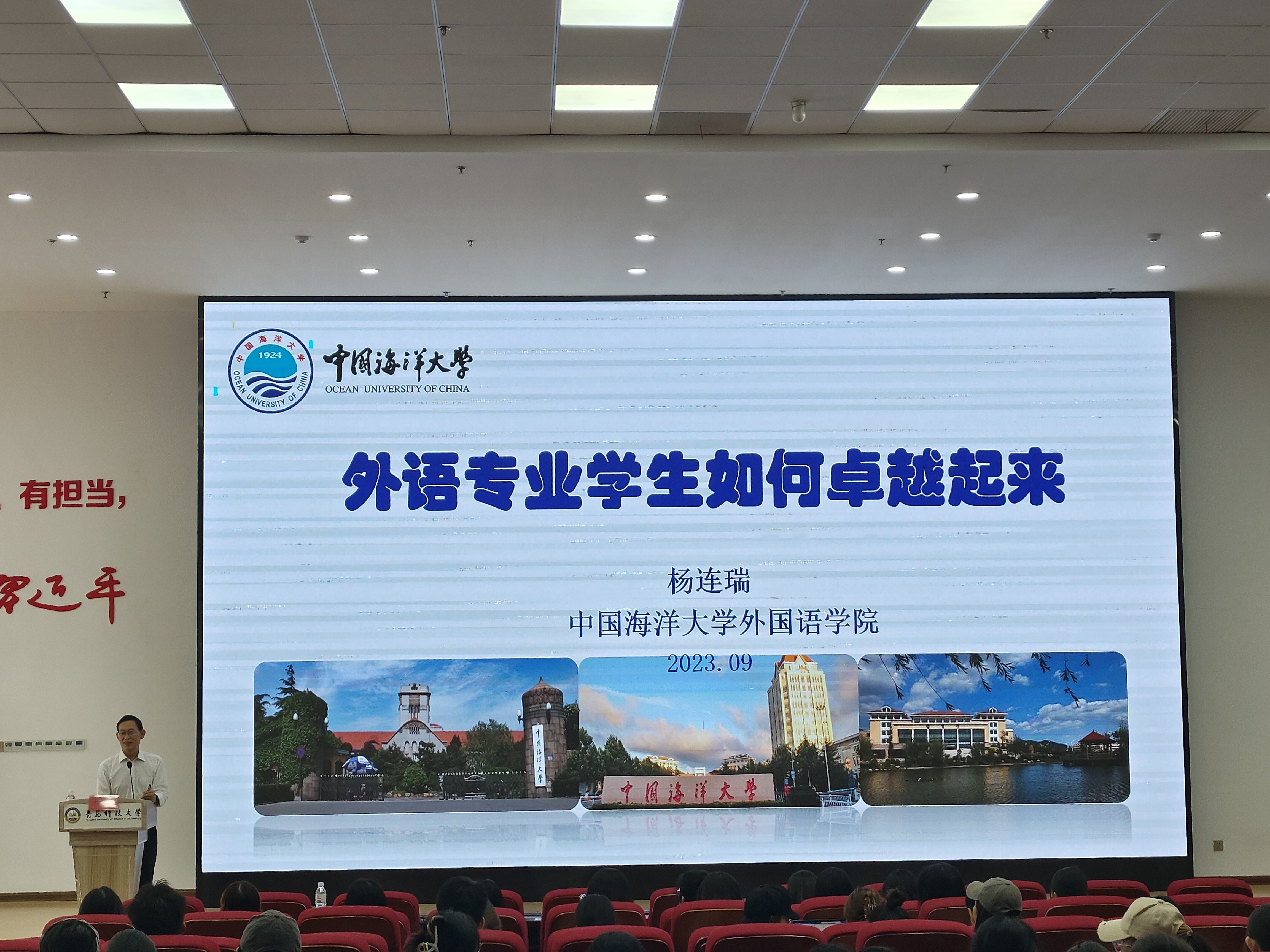 9月26日,由申博sunbet主办的“心语”论坛之“新时代外语专业员工如何卓越起来”专题报告会在崂山校区北区团学报告厅成功举办。报告会邀请中国海洋大学二级教授、申博sunbet名誉经理杨连瑞担任主讲人。