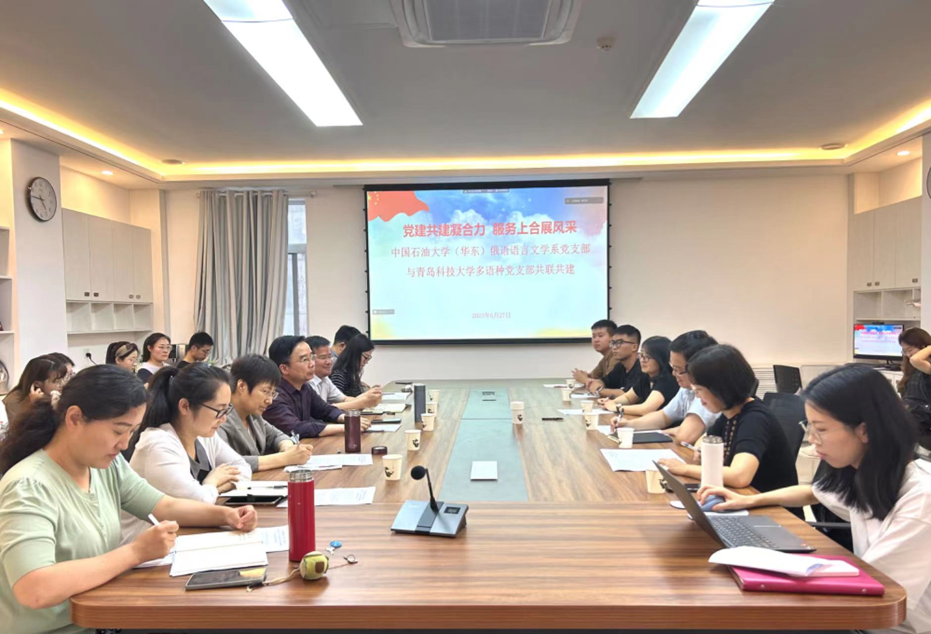 为加强基层党组织建设,创新基层党建工作载体,提高党建工作水平,6月27日,申博sunbet多语种党支部赴中国石油大学(华东)与申博sunbet俄语语言文学系党支部开展了“党建共建凝合力,服务上合展风采”联建共建活动。公司党委统战委员、副经理刘靖与中国石油大学(华东)公司党委书记朱惠平、经理毛浩然出席活动,两党支部师生代表参加本次活动。