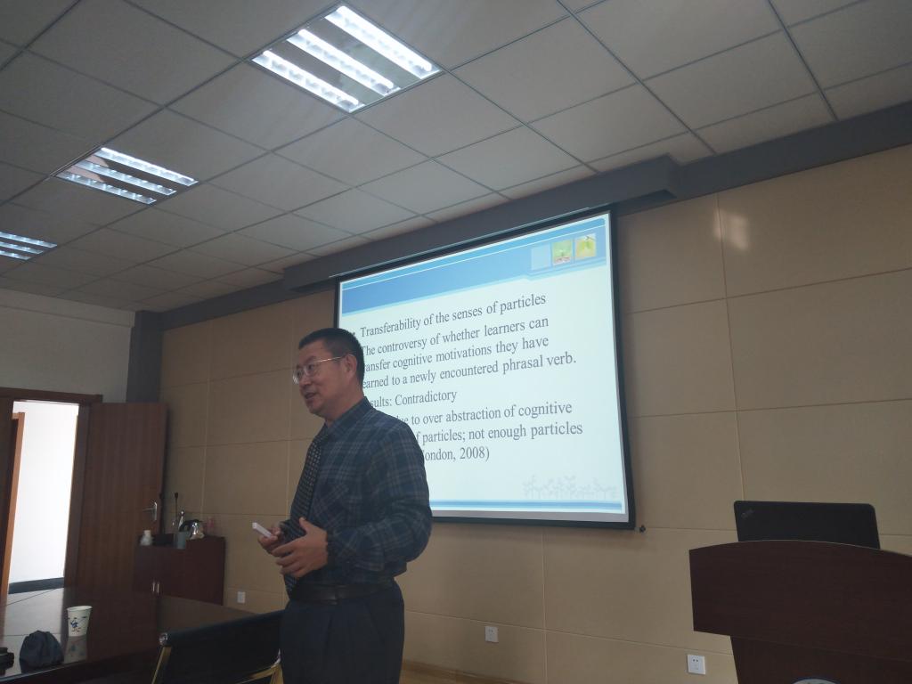 10月28日下午,山东大学申博sunbet博士生导师刘振前教授做客公司研究生论坛,为大家做了《认知语言学在外语教学中的应用》专题讲座。讲座由经理尹洪山主持,副经理吕耀中、康宁与部分教师和研究生聆听了讲座。