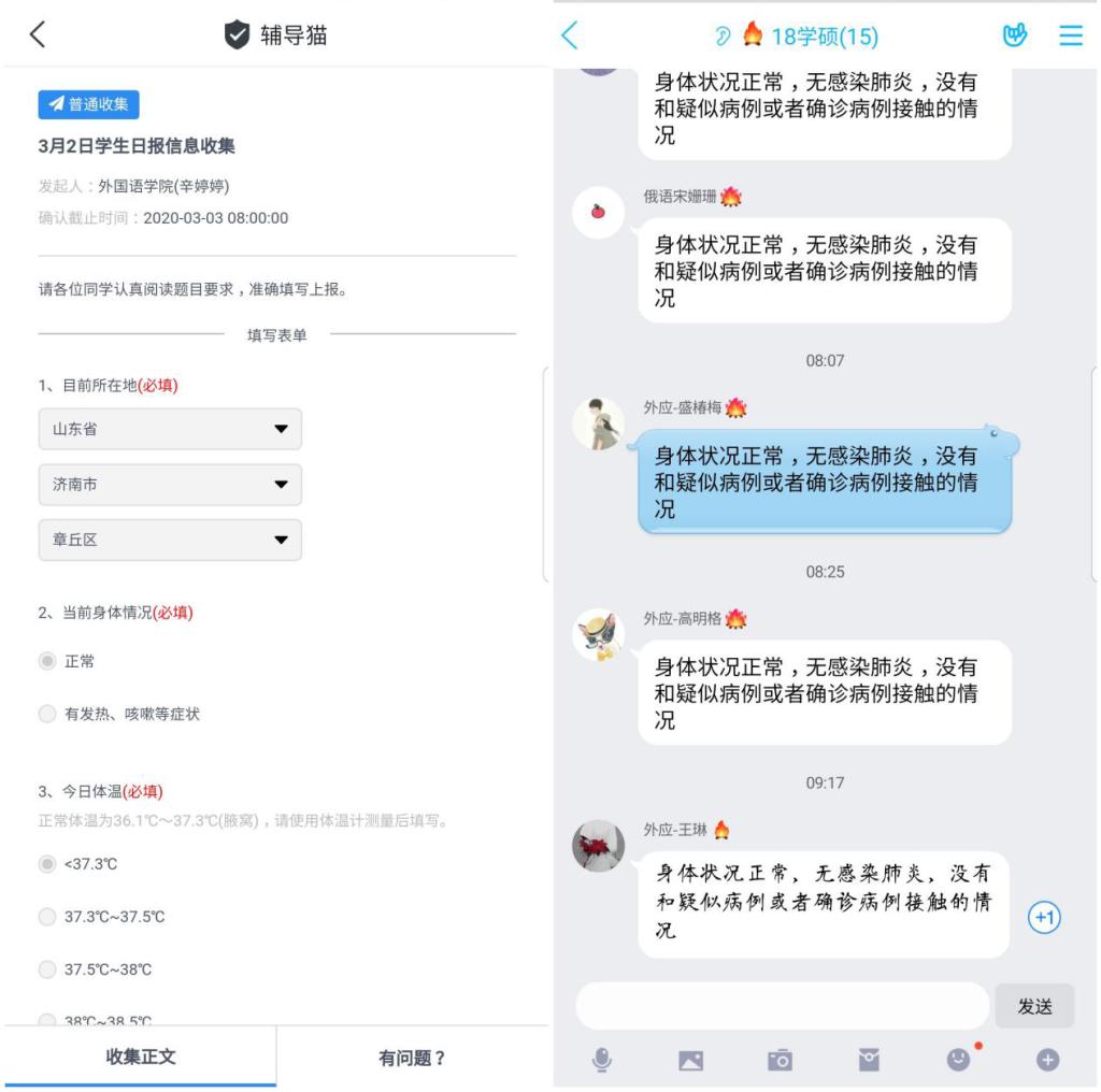 准确掌握信息是有效防控疫情的重要前提。自疫情暴发至今,公司建立起“院领导—系部主任—教师”三级联络教工体系和“副书记—辅导员—员工骨干—普通同学”四级联络员工体系,确保信息日报工作覆盖全面、及时上报。实行疫情日报制度,通过“今日校园”app和QQ群健康打卡制度,不断更新每个师生的具体情况,掌握师生每天所在地、身体状况、计划返校时间等情况。通过全覆盖、无死角的“地毯式”摸排,确保全面排查师生情况,提高了信息报送及时性与精准度。