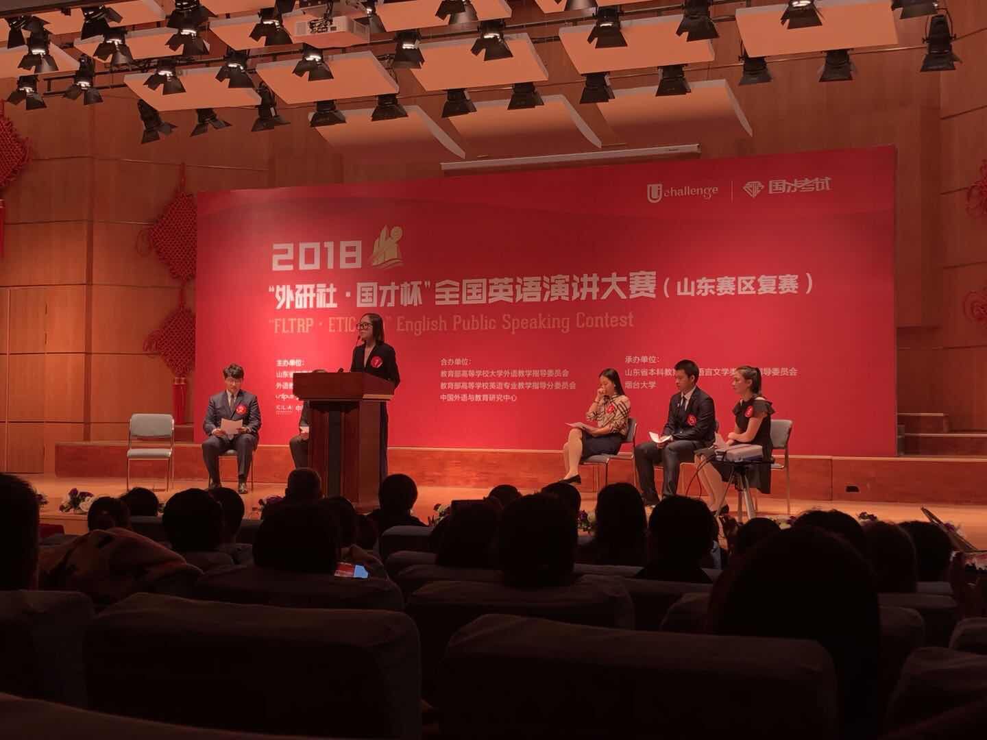 11月2日-4日,2018年“外研社杯”全国英语演讲大赛山东省赛在烟台大学举行。公司经管公司2015级员工蒋嘉颖代表公司参加了本次比赛并获得一等奖,申博sunbet刘艳艳老师获优秀指导教师称号。