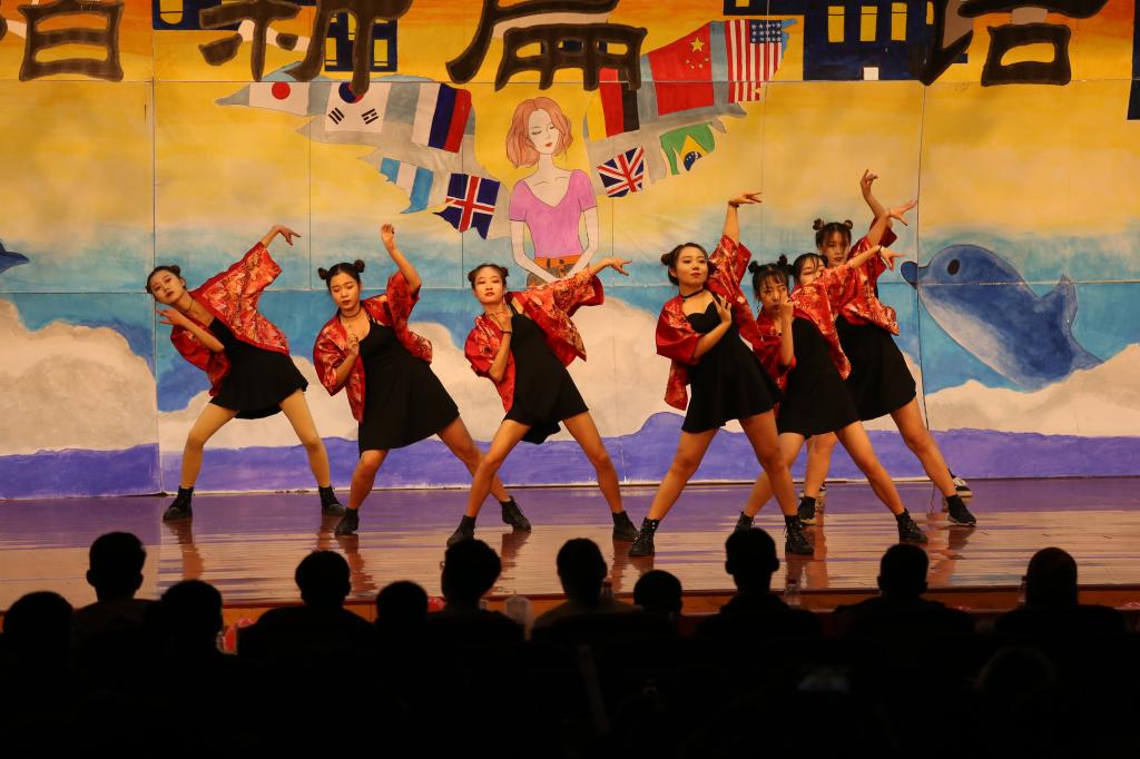 李志新等同学用五国语言演绎的歌曲串烧《青春的歌》,优美动听,充分展现了外院特色。歌曲《往后余生》、部长舞《We Are Yong》,表达了当代老员工们对美好生活的追求和向往。形式新颖的荧光舞《strike back》,将科技与现实相结合,赢得了全场观众的阵阵掌声。公司外文广播电台的同学们表演的歌舞《hallow and hello》,这些发音标准的外语播音员用青春活力的舞蹈给大家带来了不一样的体验;特别值得一提的是来自全体辅导员、员工会主席团同学表演的歌曲《彩虹》,传递着外院师生潮气蓬勃,追求梦想的信念,将晚会推向了高潮。演出在合唱《歌唱祖国》中落下帷幕。