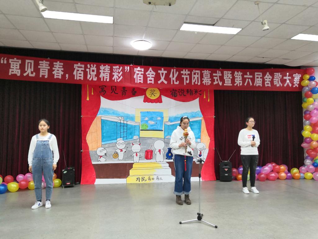 随后,舍歌大赛在一段优美的舞蹈中拉开帷幕。舞台上,温婉美妙的歌声与动感的舞蹈不停切换,赢得了观众们的阵阵掌声。参赛曲目以“弘扬主旋律,创建温馨宿舍”为主题,《晴天》、《CITY OF STARs》等歌曲的演绎方式多种多样,全面展现了外院学子团结、向上的精神面貌,表达了同学们以长征精神为引领,自强不息,创建文明宿舍的决心。同学们歌声嘹亮,比赛现场精彩纷呈,经过激烈的角逐,A509宿舍最终获得本次比赛的冠军。