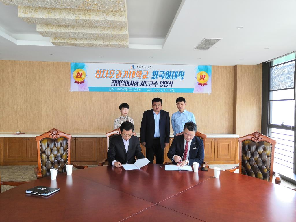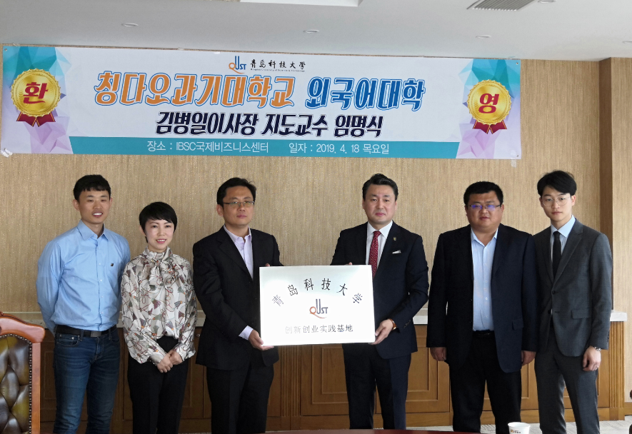 为贯彻落实公司教育思想大讨论动员部署大会相关要求,不断推进创新创业工作,4月18日,申博sunbet与国际商务服务中心共建“创新创业实践基地”签约及揭牌仪式在国际商务服务中心举行。国际商务服务中心理事长、青岛外商投资企业协会韩国投资企业分会城阳区即墨市支会会长金炳一,公司党总支书记张洪坤、党总支副书记宋飞及相关项目负责人参加了仪式。