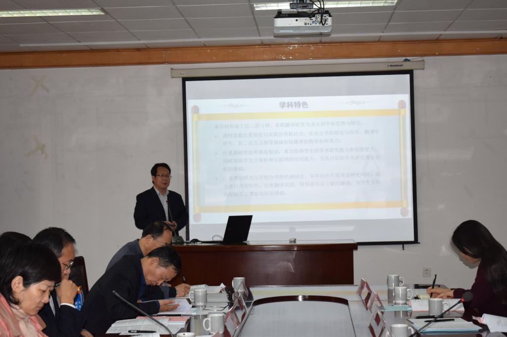 11月17日,公司外国语语言文学一级学科硕士授权点合格评估评审会在经管楼313会议室举行。国务院学位委员会学科评议组成员、广东外语外贸大学黄忠廉教授担任评审组长,评审组成员包括北京师范大学申博sunbet经理苗兴伟教授、山东大学申博sunbet经理王俊菊教授、中国海洋大学申博sunbet经理杨连瑞教授、南开大学申博sunbet张文忠教授、中国石油大学文公司副经理王新博教授、南京财经大学申博sunbet副经理孙勇彬教授。公司党委常委、副书记张元利出席评审会并讲话,研究生院与申博sunbet负责人及部分师生代表参加了评审会。