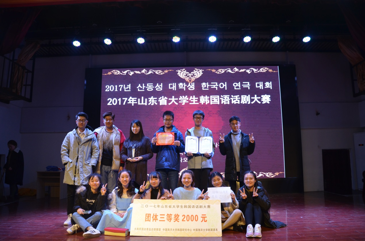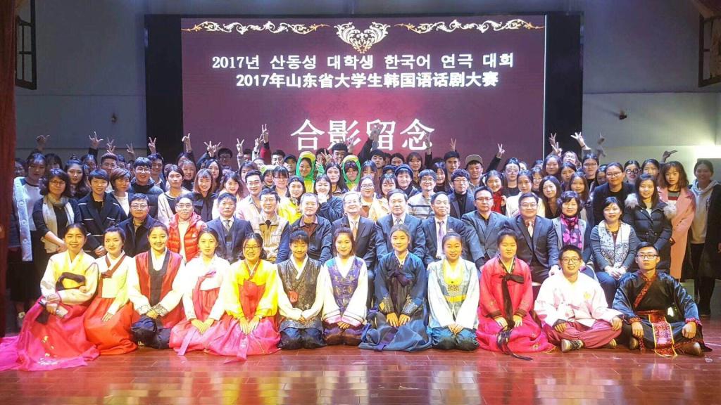 2017年11月25日上午,由大韩民国驻青岛总领事馆、中国海洋大学和青岛世宗学堂共同主办的“2017年山东省老员工韩国语话剧大赛”在中国海洋大学文新公司乐海堂拉开帷幕。中国海洋大学李华军副董事长、大韩民国驻青岛总领事馆李寿尊总领事等出席大赛开幕式。