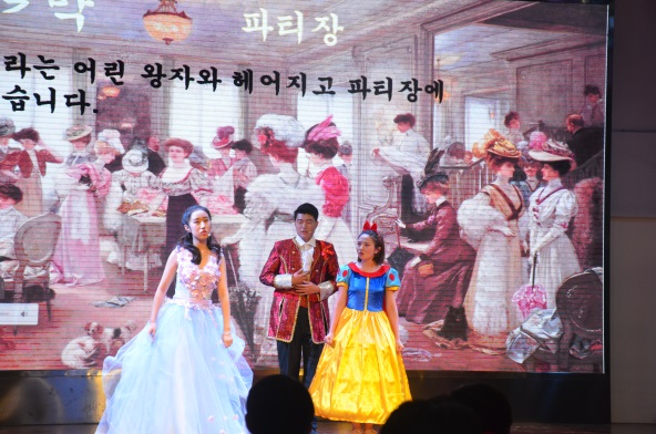 我系在本次大赛中凭借剧目<왕자없는신-데렐라>(没有王子的灰姑娘)获得了团体三等奖的佳绩。该剧目讲述了脾气暴躁的灰姑娘为参加王子举行的舞会而引发的一连串啼笑皆非的故事。灰姑娘误打误撞地拦截了人鱼公主的精灵,又误打误撞地抢走了白雪公主的王子。经典的童话人物,新颖的故事情节,同学们的精湛演技,三者碰撞出的火花塑造了精彩的演出效果。