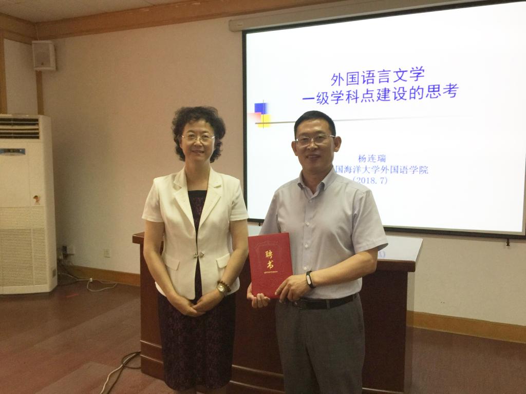 7月4日,中国海洋大学杨连瑞教授受聘为公司客座教授,聘任仪式在经管楼313教室举行,公司党委常委、副董事长张淑华出席并颁发聘书。院领导尹洪山、吕耀中、康宁、宋飞和部分师生代表参加了聘任仪式。