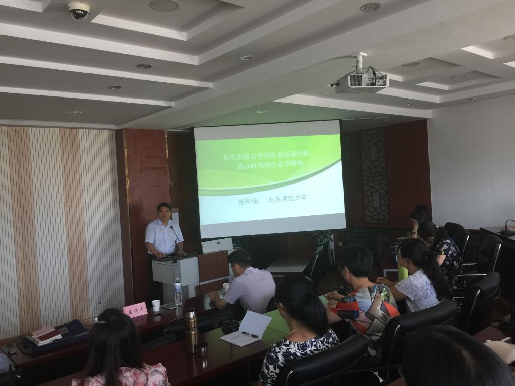 9月7日下午,北京师范大学外文公司博士生导师苗兴伟教授应邀来公司进行学术交流,在经管楼511会议室做了一场题目为“从生态语言学到生态话语分析:语言研究的生态转向”的学术报告。报告会由申博sunbet经理尹洪山主持,副经理康宁以及申博sunbet的部分教师与员工参加了这次讲座及交流。