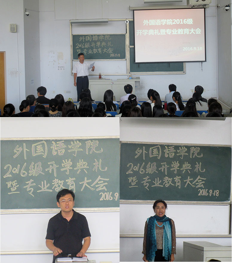 金秋送爽,丹桂飘香。9月18日上午,2016级新生开学典礼暨专业教育大会在弘毅楼E403隆重举行。外国语党政领导姜德杰、许桂峰、任素贞、吕耀中、尹洪山、各系主任以及来自全国各地的236名新生参加了本次大会。会议由副经理兼党总支副书记张洪坤主持。