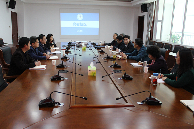 4月6日上午,申博sunbet经理尹洪山、党总支书记姜德杰等一行8人到高密校区考察调研,并与高密校区领导梁树清、官杰及相关部门负责人进行了座谈交流。