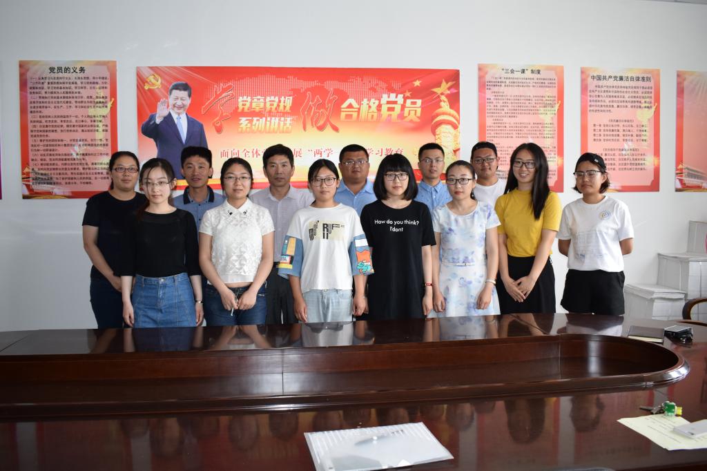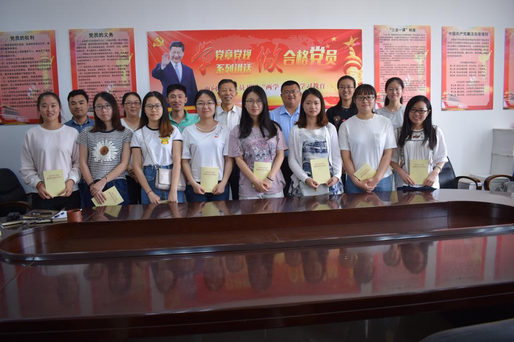 “不忘初心,筑梦远航”毕业生党员主题教育活动。6.16日下午,申博sunbet在公司楼502会议室开展了“重温入党誓词,增强感恩奉献”主题教育活动,会上,党总支书记姜德杰对全体员工党员以优异的成绩完成学业表示祝贺,希望同学们要时刻牢记党员的身份,提升党性修养,履行党员的使命,争当优秀员工,为公司、公司的人才培养工作增光添彩。会后,面对庄严的党旗,全体毕业生党员进行了宣誓活动,“我志愿加入中国共产党,拥护党的纲领,遵守党的章程,履行党员义务……”,全体毕业生党员举起右手庄严宣誓,洪亮的声音传遍了整个公司楼,用誓言表达对党的无限忠诚和热爱。