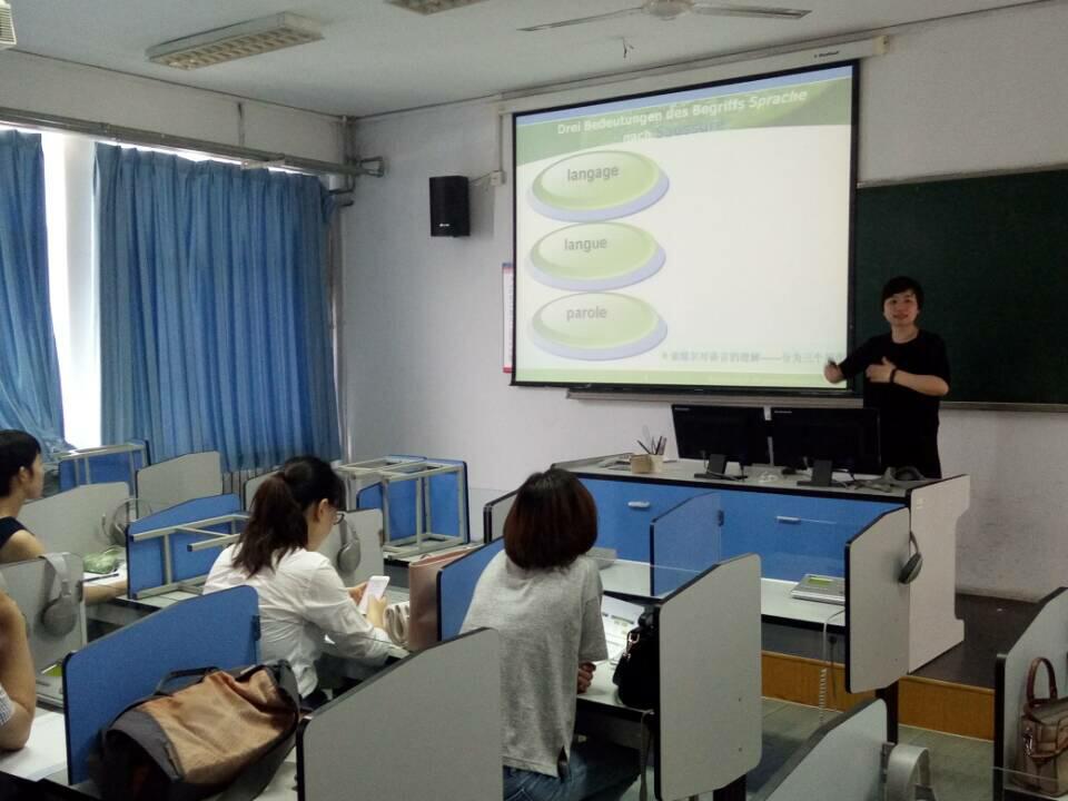 随后分英语专业,大外,小语种三组进行比赛。参加比赛的人数为英语专业6人,大外7人,小语种7人。英语专业老师们将写作,法律英语,跨文化交际和精读等课程做了精彩讲解。大外的老师们将英语精读和视听说两项课程完美地呈现在讲台上。小语种的老师们也充分展示了她们娴熟的语言技能和巧妙的教学技巧。