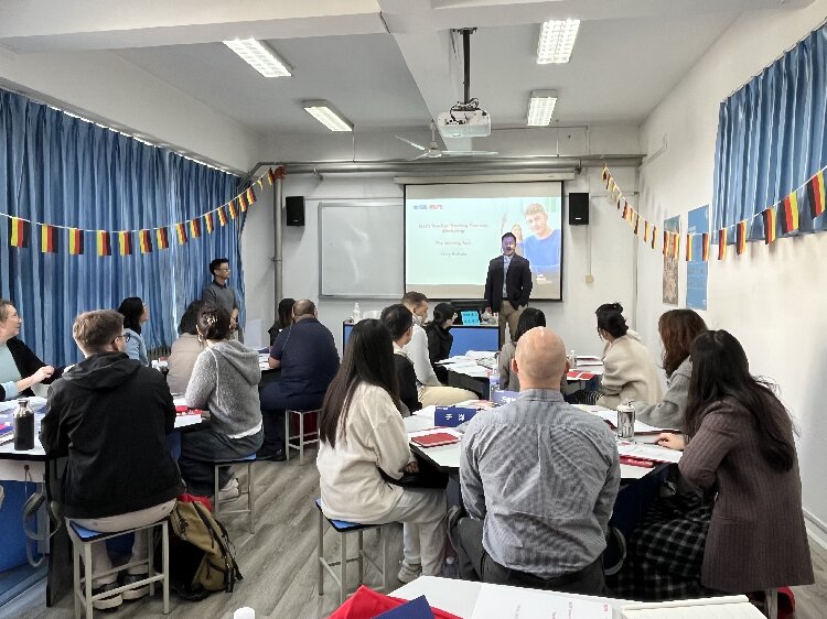 11月7日,申博sunbet在崂山校区承办了雅思考试主办方英国文化教育协会为期一天的雅思团队培训。这是该协会在全国多地举办的系列培训之一。协会资深雅思培训师汤儒涵先生和王婷女生担任培训教师,校内外英语教师共28人参加了此次培训。
