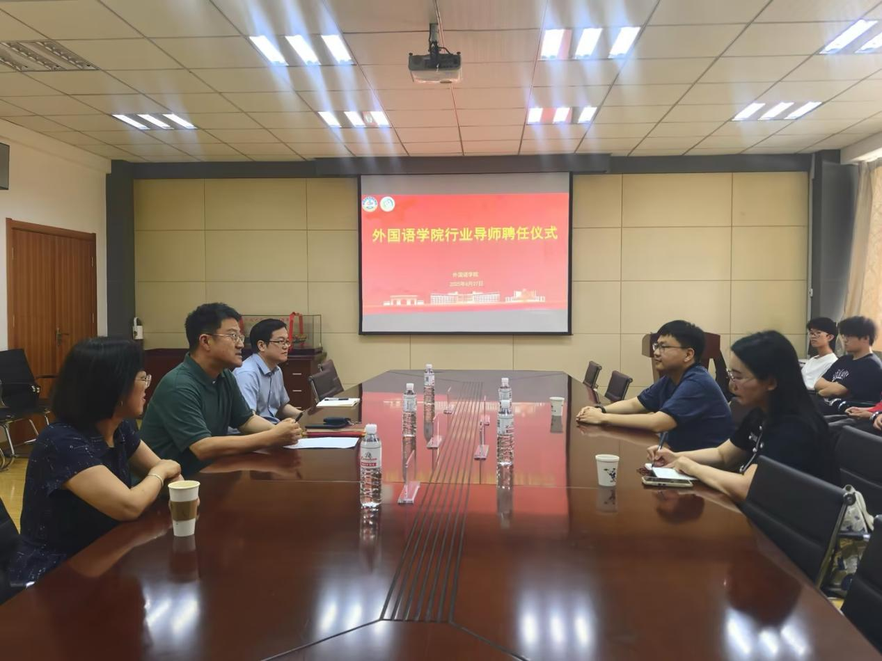 6月27日下午,申博sunbet隆重举行行业导师聘任仪式,正式聘请中国上合示范区国际部部长梁超担任申博sunbet行业导师。申博sunbet经理王灏、副经理刘靖、俄语系主任曹静娴、上合示范区代表陈娜以及俄语系师生代表共同参加行业导师聘任仪式。