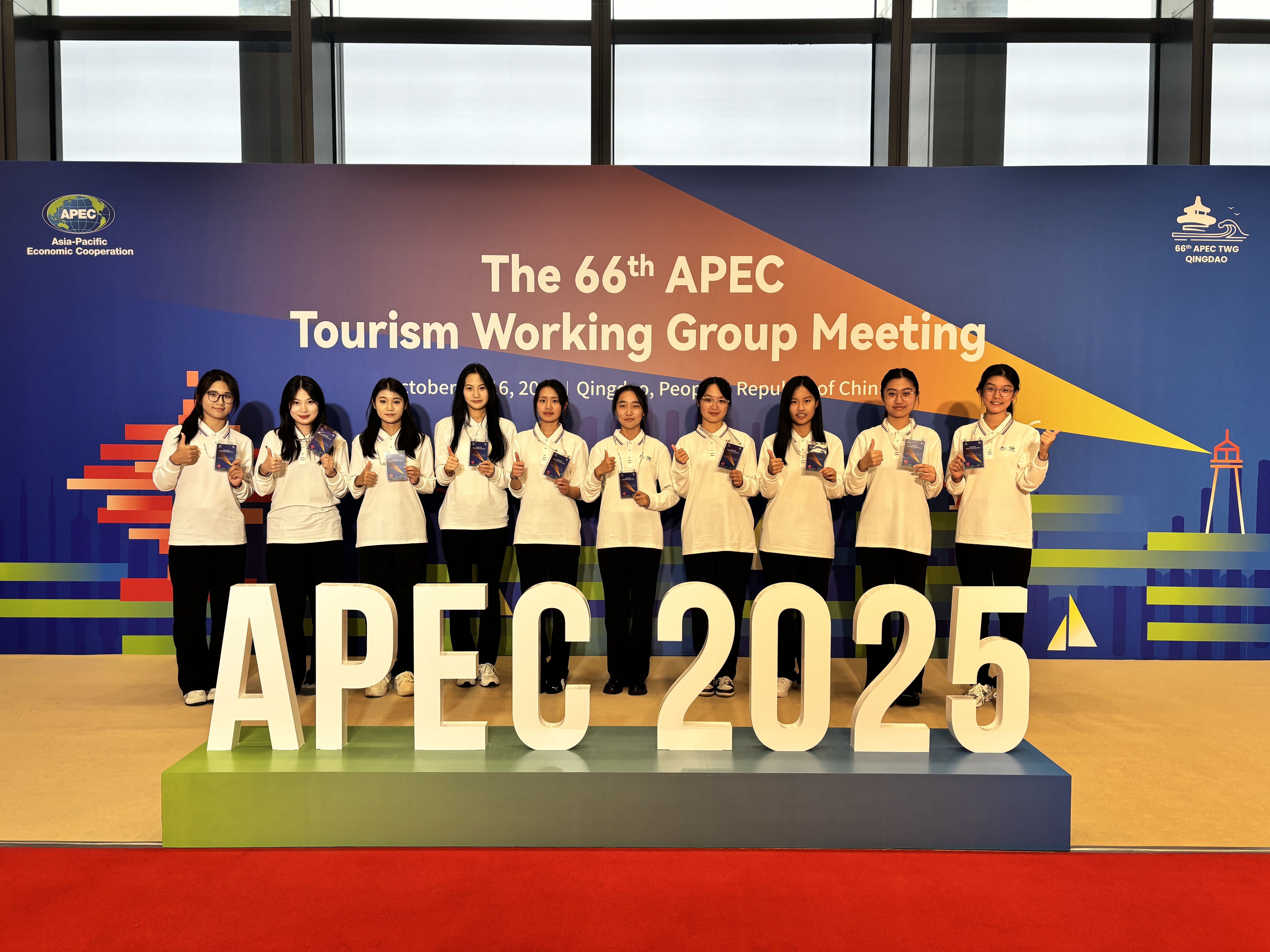 近日,亚太经合组织(APEC)第66次旅游工作组会议在青岛成功举办。申博sunbet“小语滴”志愿服务团选派优秀志愿者参与会议服务保障工作,以扎实的语言功底、专业的服务水平和饱满的青春热情,为这场国际盛会的顺利召开贡献了外院力量。
