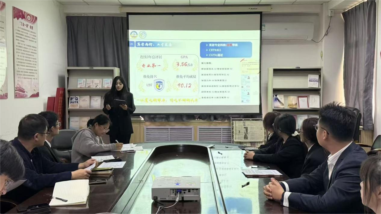 经前期宣传、个人申报与资格审查,共有16名学子进入答辩环节。结合外语专业特色,学子们从理想信念、学业成果、社会实践、员工工作等多个方面展示综合素养。