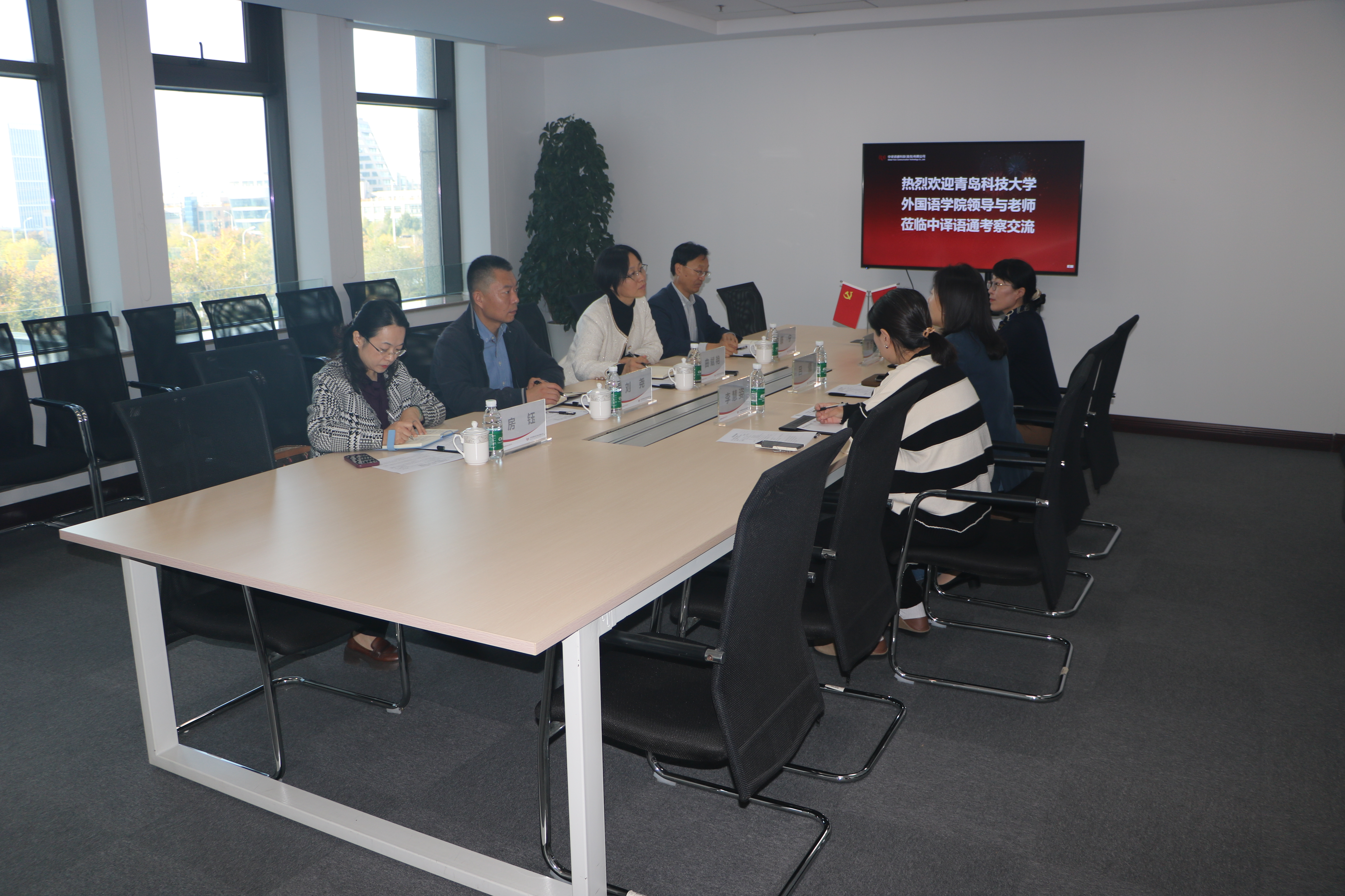 中译语通科技(青岛)有限公司语言科技事业部总经理吕倩、翻译部副总监李慧姿和经理焦宗艳对曲斌艳一行的到来表示欢迎,并简要介绍了公司的发展历程和核心业务板块,对公司员工的工作情况给予了高度评价。曲斌艳介绍了公司专业建设情况以及与中译语通近年来的合作,希望双方在校企合作共建、人才培养、团队队伍建设和就业等方面寻求更多的合作机会。座谈会上,双方针对新形势下校企合作的模式创新、企业对外语人才的需求以及对公司人才培养方案和公司产品的意见建议进行了深入交流,并确定未来双方在人才联合培养和团队队伍共建等方面展开深入合作。