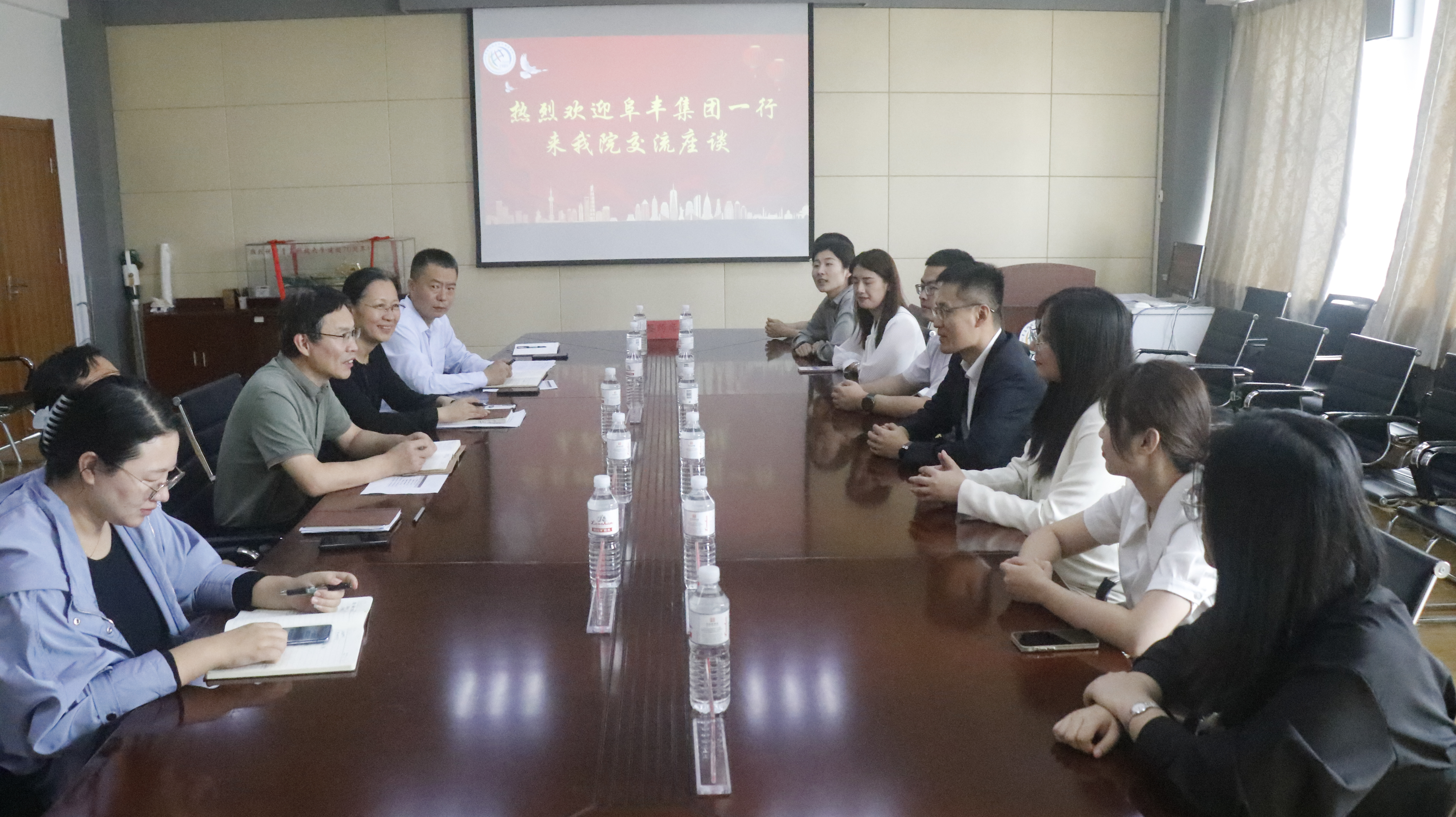 为加强校企合作,促进资源优势互补,探讨校企合作的新模式,2023年9月26日,阜丰集团营销总公司全球人力资源总监夏龙飞率团一行八人来公司开展交流合作。经理尹洪山、公司党委书记曲斌艳、党委副书记兼副经理刘尧、副经理康宁、团委书记和学工办主任刘妍君参加座谈。