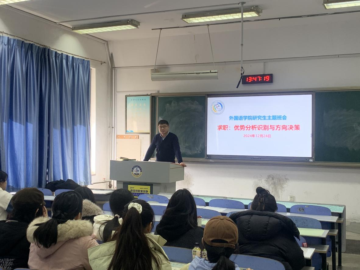 为进一步帮助公司研究生明晰未来求职发展路径,提高自我认知水平与职业探索能力,充分调动毕业生就业积极性,申博sunbet于12月24日在弘毅楼B106举办“求职:优势分析与方向决策”就业指导主题班会。主题班会由研究生辅导员、公司党委副书记兼副经理马寒主讲,全体2023级研究生参加。
