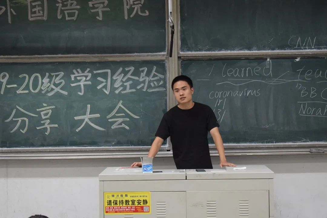 大会上给萌新们分享经验的学姐学长分别是:英语系张子昂、陈雨馨,日语系陈晓阳,俄语系卢桔汀,韩语系王晓铭,德语系张晓彤。