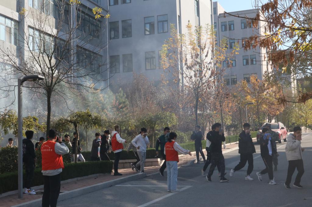 11月10日下午,2020年消防应急疏散演练在崂山校区举行,2020级新生员工代表现场观摩了此次活动。