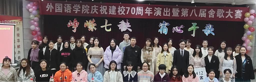 峥嵘七秩,宿心于歌。11月13日,申博sunbet庆祝建校70周年演出暨第八届舍歌大赛在南苑老员工活动中心圆满举办。申博sunbet团委副书记兼学工办副主任李东阳、王雨昕,团委兼职辅导员王梦珂、薛莹以及全体2020级本科生参加了本次活动。