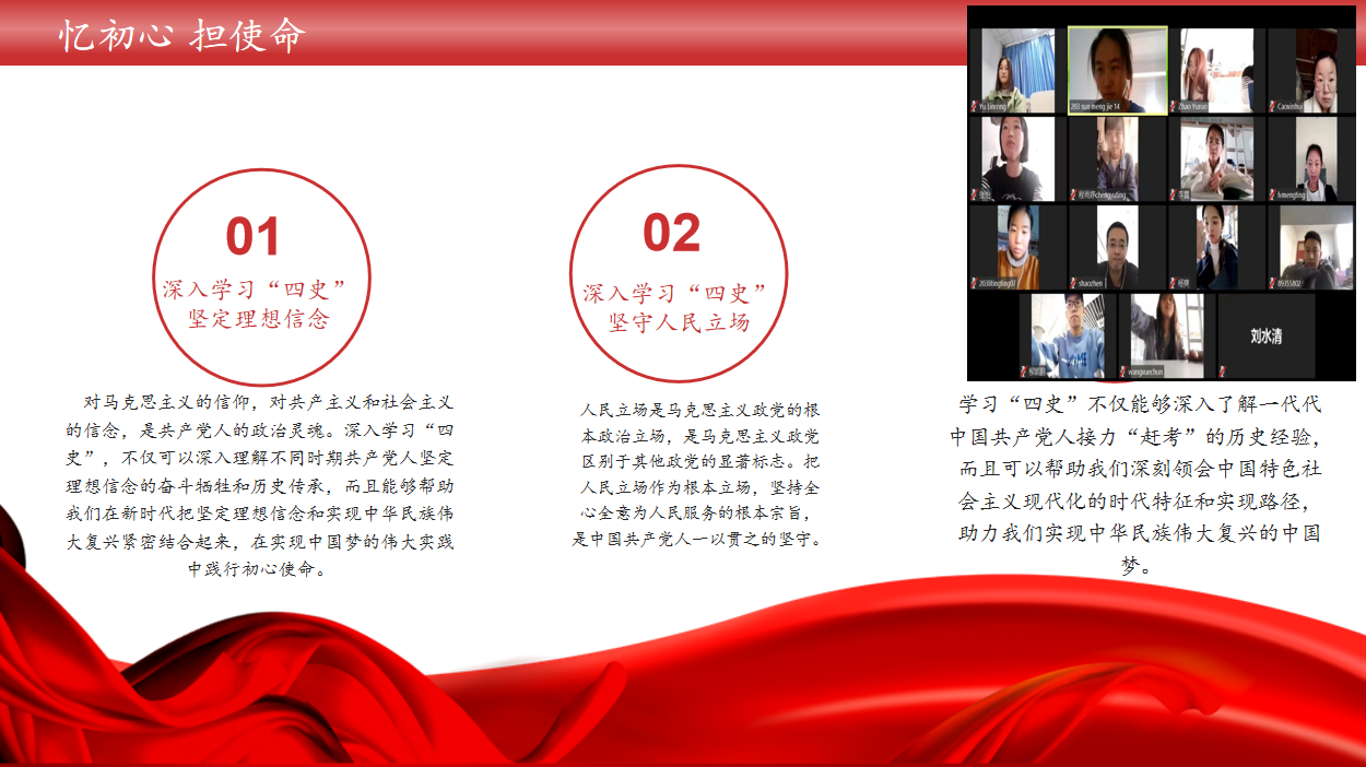 经过理论学习,全体青年团员受益匪浅,踊跃发言,纷纷分享自己的感受,表明要坚守初心,紧跟时代步伐,为实现中华民族伟大复兴的中国梦贡献青春智慧和力量。