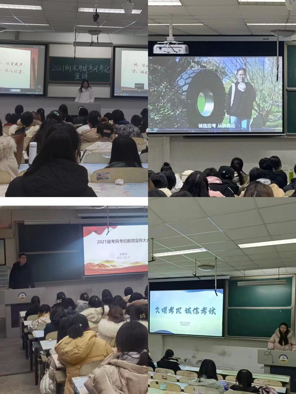 2021年秋季学期期末考试在即,为进一步加强学风建设,严肃考风考纪,加强诚信教育,营造一个公平公正的考试环境,12月17日晚,申博sunbet四个年级在弘毅楼教室内同时开展了2021年秋季学期考风考纪教育宣传大会。