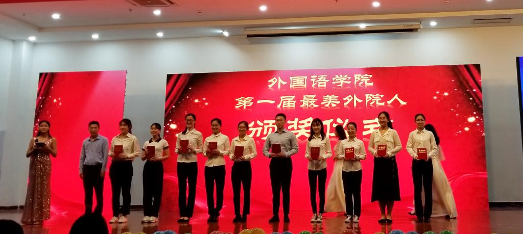 活动中,公司领导老师通过视频表达了对毕业生的祝福,经理尹洪山为第一届最美外院人颁奖。