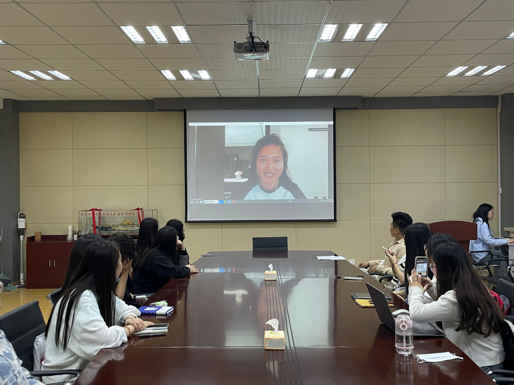 第三位分享人王治军,毕业后入职青岛航空股份有限公司,担任飞行技术部-手册翻译一职。她从在校学习、就业择业、当前岗位标准以及工作经验分享四个方面进行了详细的经验分享,表示无论是在工作还是生活中,都要真诚谦逊,勇敢大方,保持不断学习积极学习的热情,敢于试错,把握机会。同时还对同学们发出了真挚的祝福,希望同学们都能找到理想工作,过上充实生活。