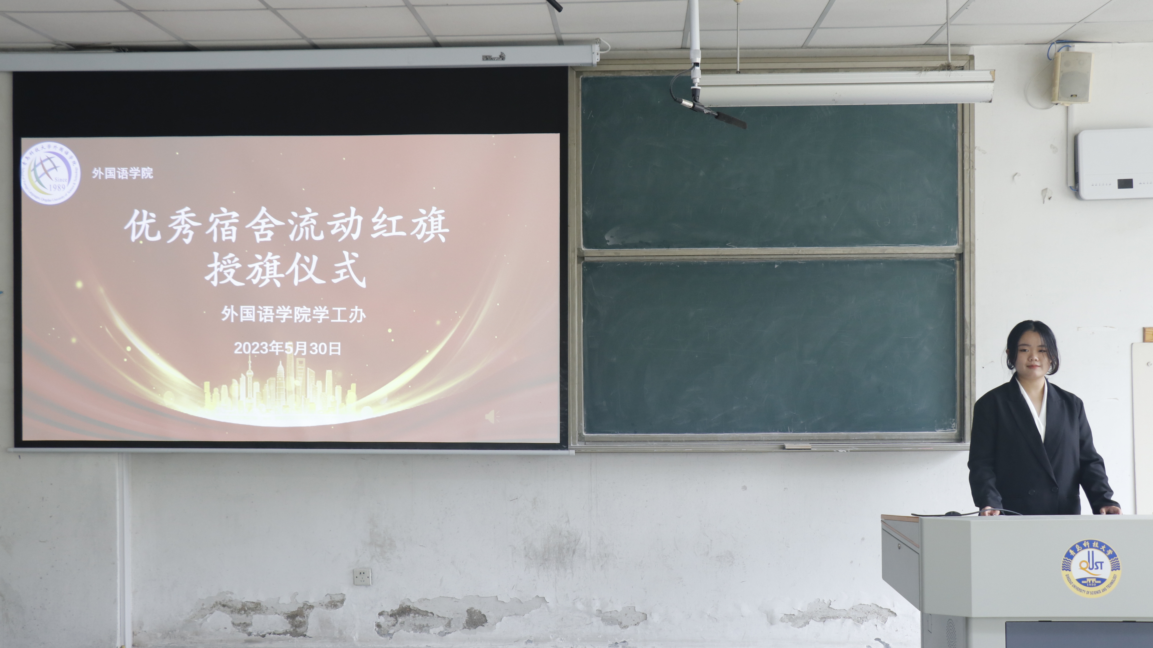 为营造文明和谐的寝室生活氛围和积极向上的学习氛围,帮助同学们养成良好的生活与学习习惯,5月30日下午,申博sunbet学工办于弘毅B101教室举行优秀宿舍流动红旗授旗仪式,出席本次活动的有学工办主任刘妍君老师、辅导员张湘钧老师以及各优秀宿舍代表。