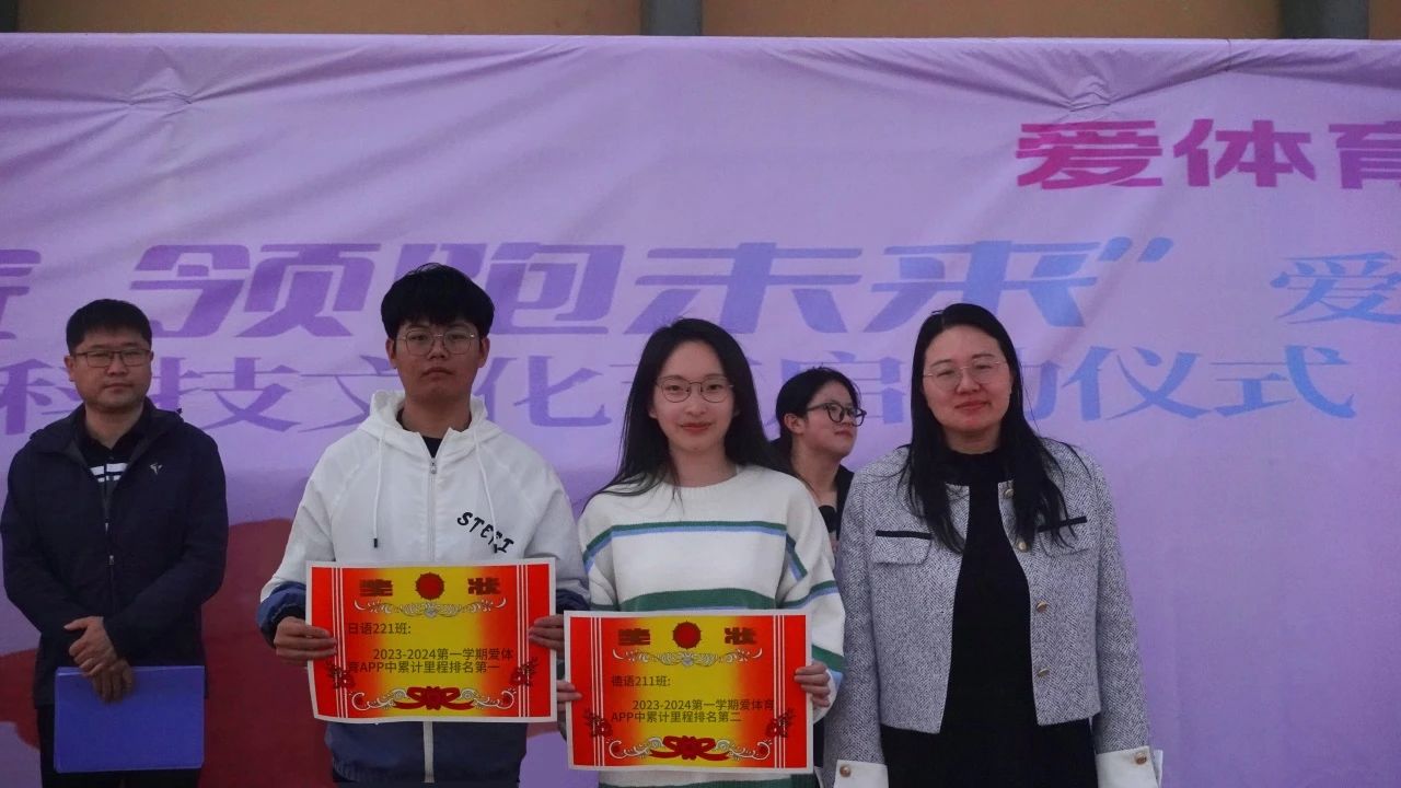 启动仪式进行第三项,党委副书记兼副经理马寒老师、团委书记兼学工办主任刘妍君老师代表申博sunbet对上学期在爱体育健康跑中表现优异的员工及班级进行颁奖。