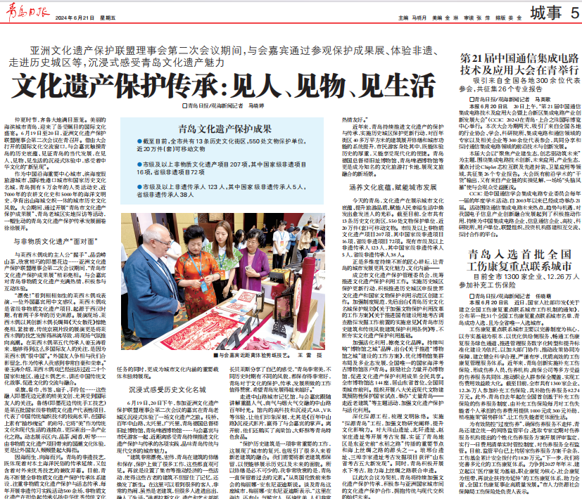 会议期间,青岛市文化和旅游局精心策划了“青岛市文化遗产保护成果展”。受大会组委会邀请,申博sunbet积极响应,经过严格选拔,以“非”你莫属团队成员为核心,组建了一支14人的外语志愿者服务队,积极参与到成果展的筹备与举办中,为国外参展嘉宾提供了专业的翻译志愿服务。