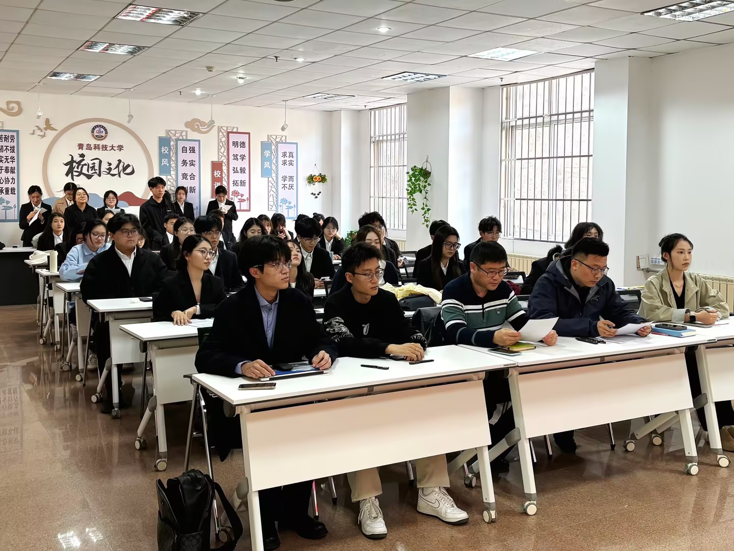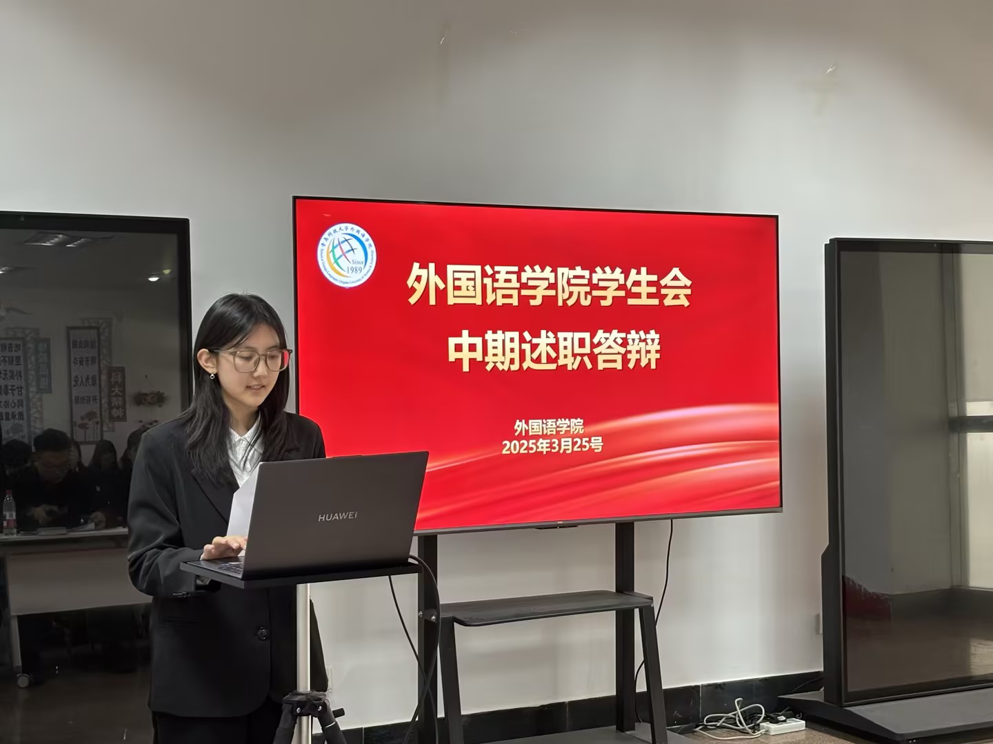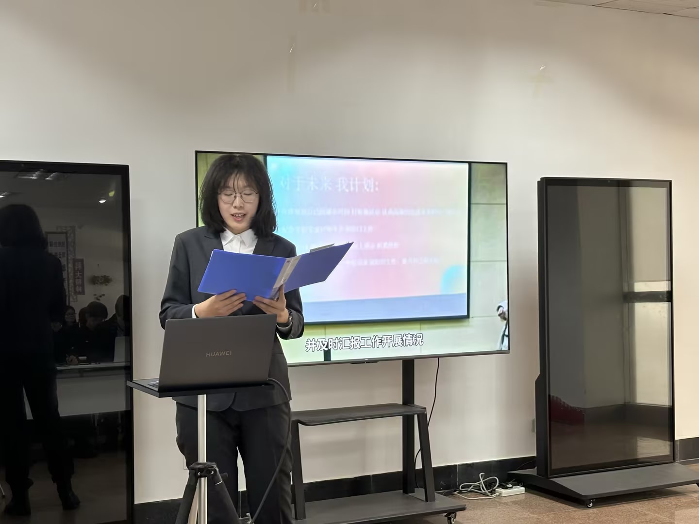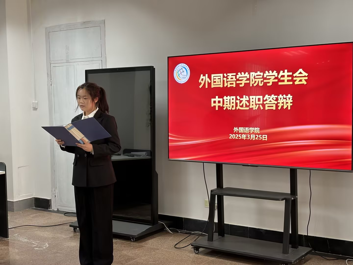 述职汇报环节,全体员工骨干围绕“履职成效、创新方法、发展目标”三大维度展开陈述。各部门负责人结合岗位职责,以详实数据与典型案例展现工作实效,重点汇报了在思想引领、学风建设、实践育人等方面的实践探索。汇报过程中,员工骨干深入剖析协同机制待优化、品牌项目延续性不足等问题,并提出具体改进方案,充分体现“刀刃向内”的改革意识。