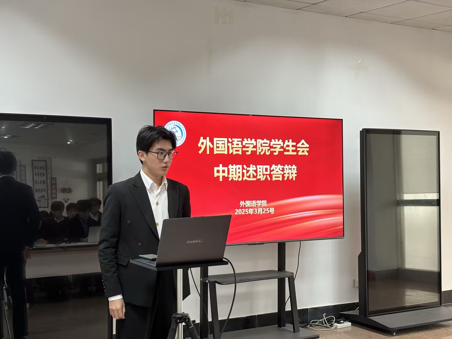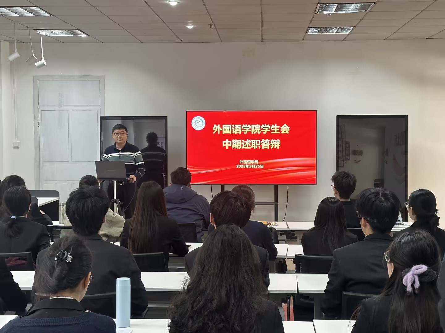 王玉凯老师对述职内容进行逐一点评,充分肯定员工骨干在活动策划、机制创新、团队建设中的积极作用。他强调,员工组织需进一步强化“需求导向”,在服务同学学业发展、权益维护、就业指导等领域深耕细作,同时要求各部门主动对标公司“语”你同行员工工作品牌建设,将打造品牌活动理念贯穿活动设计、资源整合、服务创新的全过程,以品牌化、项目化思路提升工作内涵。