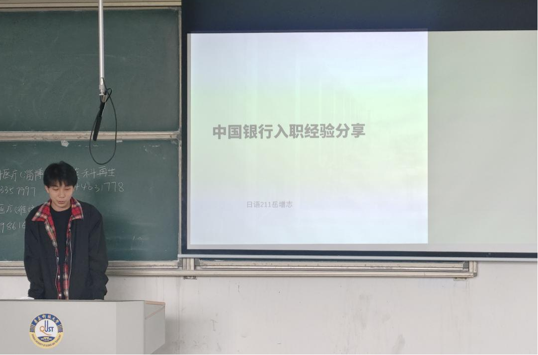 2025届毕业生代表以自身经历为蓝本,生动诠释了多元化发展路径的无限可能。2022级专硕袁鑫结合自身实战经验,深度剖析企业岗与体制岗面试的不同侧重点,从面试流程到应答策略,为外语专业的学弟学妹们勾勒出清晰的就业蓝图;日语211班岳增志化身“引路人”,聚焦银行入职核心环节,将笔试备考的知识体系构建与面试技巧的灵活运用倾囊相授,为同学们解锁入职密钥;德语211班孙昕旭则以保研为切入点,细致拆解从材料筹备到夏令营突围的全流程,分享了材料优化技巧与实战经验,为学弟学妹们的深造之路点亮明灯。